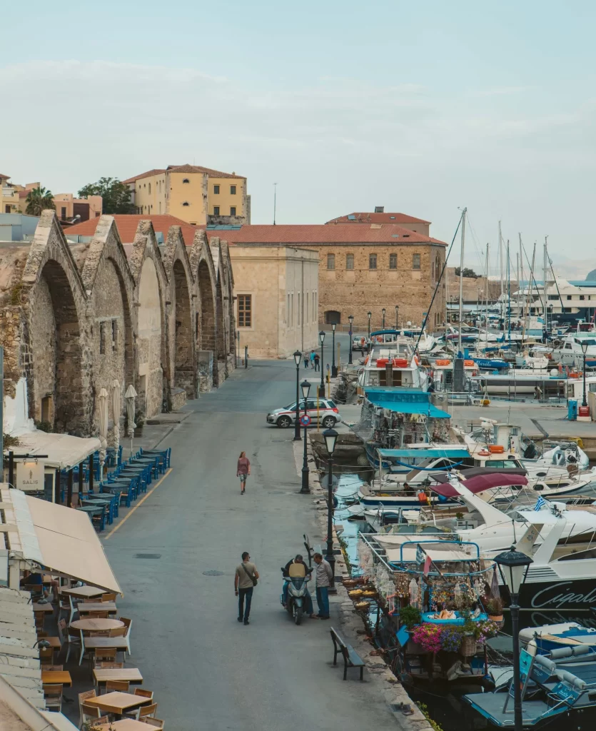 The stroll around Chania and the Old Town starts from the Venetian Port, with its colorful buildings and the Egyptian lighthouse ahead of you is one of Chania’s defining symbols offering the perfect sunset spot.It’s worth walking around the harbor to the lighthouse, from where you’ll gain another perspective of the old town. The Kucuk Hasan Mosque, just by the port, was built by the Ottomans in the 17th century on top of an ancient Greek temple and offers yet another form of architecture.